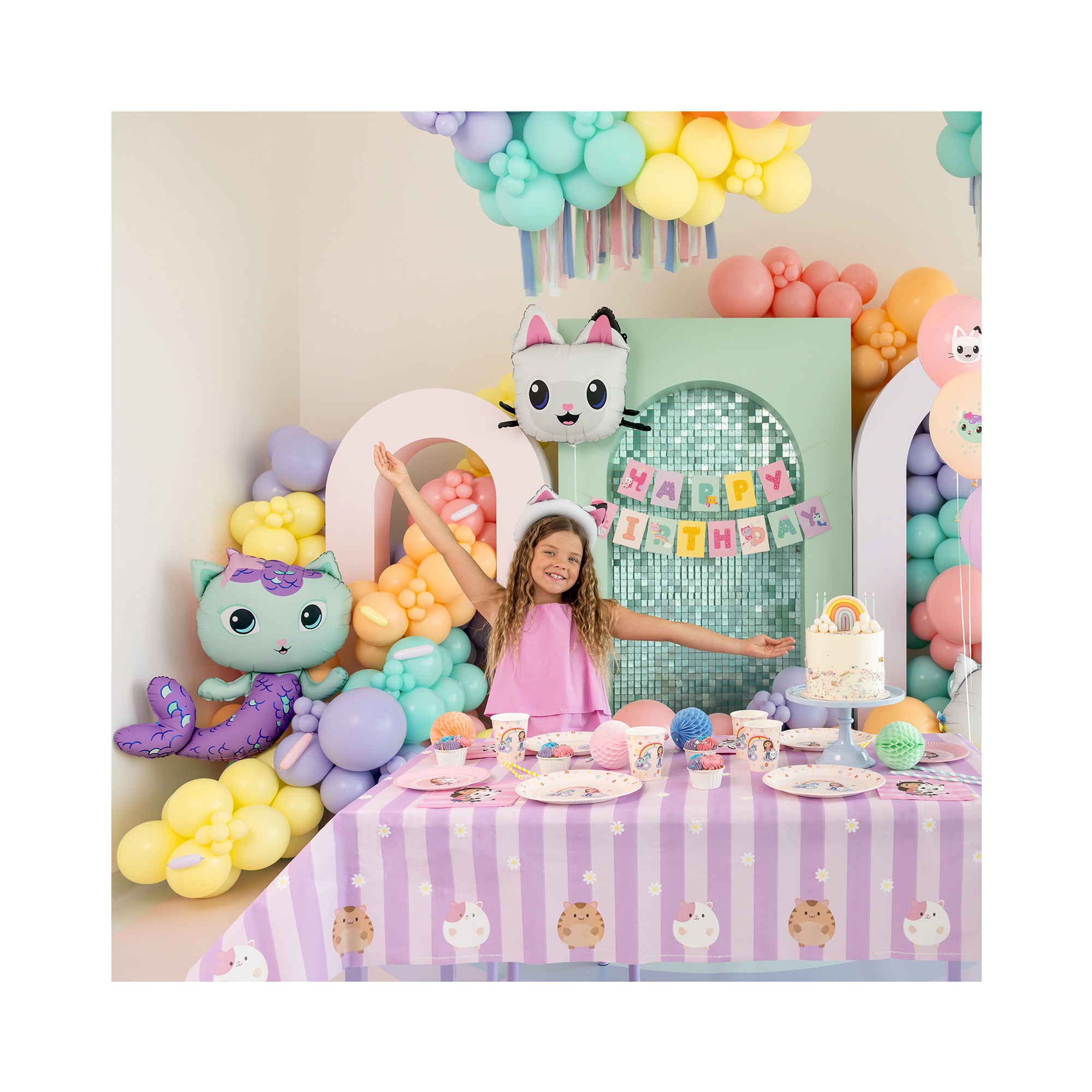 Veselý fóliový balónek ve tvaru Rybočky je skvělou dekorací na dětskou narozeninovou oslavu nebo tematickou párty. Balónek je v motivu oblíbeného dětského animovaného seriálu Gábinin kouzelný domek (Gabby’s Dollhouse). Hlavní hrdinkou je Gábina, zvídavá a milá holčička, která se pomocí kouzel zmenší a objevuje kouzelný svět svého domečku plný kočičích kamarádů, her, tvoření a fantazie. Každá epizoda přináší barevná dobrodružství, kreativní nápady a pozitivní poselství, díky nimž si seriál zamilovaly děti po celém světě. Pro další párty doplňky a dekorace s motivem Gábi nebo koček můžete navštívit naše tematické kategorie Gábinin kouzelný domek nebo Kočičky. Rozměry: 80 × 82 cm po nafouknutí (88 × 109 cm před nafouknutím) Materiál: pevná fólie Balení obsahuje: 1 ks balónku a brčko pro snadné nafouknutí Balónek je možné nafukovat vzduchem i heliem.