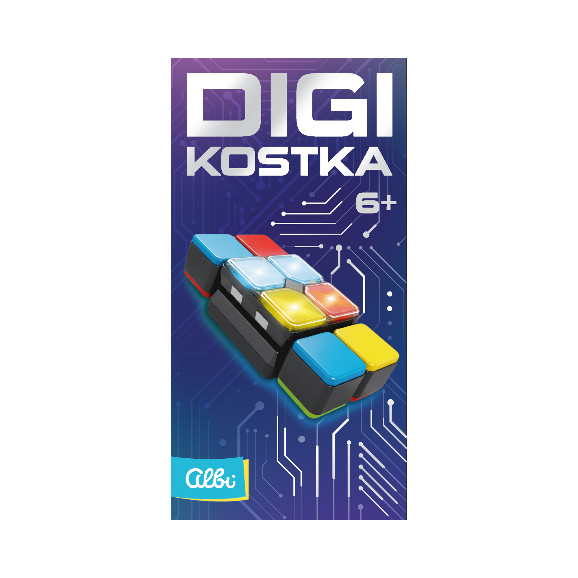 Otoč, poskládej, vyhraj! Digi Kostka prověří váš mozek i reflexy v bleskové akční hře. Zábavná elektronická hra plná chytrých miniher a rychlých reakcí. Na zařízení se rozsvítí barevná světla jako zadání. Otáčejte bloky po stranách, dokud nenajdete správné barvy. Zadání splníte, když všechny barvy souhlasí. Digi kostka – Elektronická hra nabízí 4 herní režimy: Dosažení nejvyššího skóre (Score mode) – Proveďte 15 tahů v co nejkratším čase! Otáčením a posouváním bočních bloků musíte co nejrychleji sladit jejich barvy se zadáním na středové kostce. Skóre se měří v sekundách. Souboj s časem (Time mode) – Dokážete splnit zadání dříve, než vyprší limit? Čeká vás 12 úrovní a s každou další se čas na splnění tahů zkracuje. Skóre je určeno počtem úspěšně dokončených tahů. Procvičování paměti (Memory mode) – Zapamatujte si pořadí rozsvícených barev a následně je zopakujte posunutím bočních bloků. Hra má 10 úrovní, přičemž na každý tah máte omezený počet pohybů i času. Hra pro více hráčů (Multiplayer mode) – Akční zábava pro skupinu, kde si hráči předávají kostku po splnění náhodného počtu tahů. Hra postupně zrychluje a prohrává ten, komu vyprší časový limit v rukách. Hlášky a oznámení herních režimů jsou pouze v anglickém jazyce. Hra funguje na 2 × 1,5V AA tužkové baterie, které nejsou součástí balení.